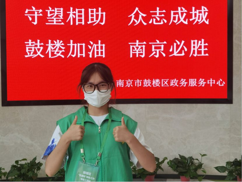 黄嘉嘉,20级软件工程1班员工 服务地点:南京市鼓楼区 服务内容:鼓楼区政务热线转码工作,对健康码无故转黄“委屈码”等问题进行处理。 工作感想:疫情当下,我们新时代老员工更应该行动起来,加入到疫情防控队伍中去,在自己生长的城市遇到困难的时候挺身而出,用实际行动诠释当代年轻人的担当,积极投身于这场没有硝烟的战“疫”当中,回馈社会。长夏终有时,惟盼岁月安。经历过风雨洗礼的城市,将会更加美丽、安居,众志成城,齐心协力,疫情终会消散!