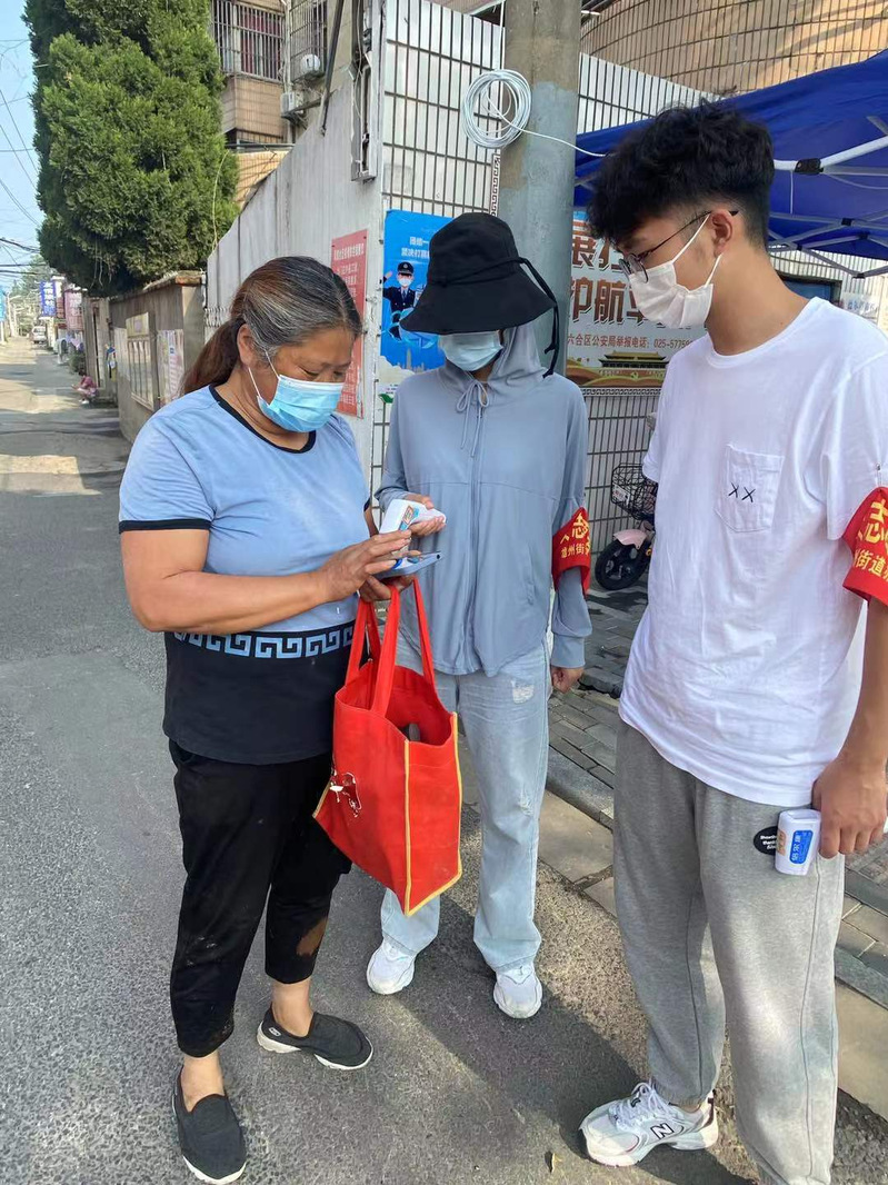 夏天,19级计算机科学与技术专业2班员工 服务地点:南京市鼓楼区银城花园社区 服务内容:承担检测现场人员信息录入、耗材准备、现场秩序维护等工作 工作感想:我在实践中不断深化了对党的认识,提高了自身素质,我们青年学子应该在国家需要的时候冲在最前面,敢于承担起社会责任,克服重重困难。这次抗疫志愿服务中,我也看到了许许多多的凡人善举,愿疫情早日结束,南京加油!中国加油!