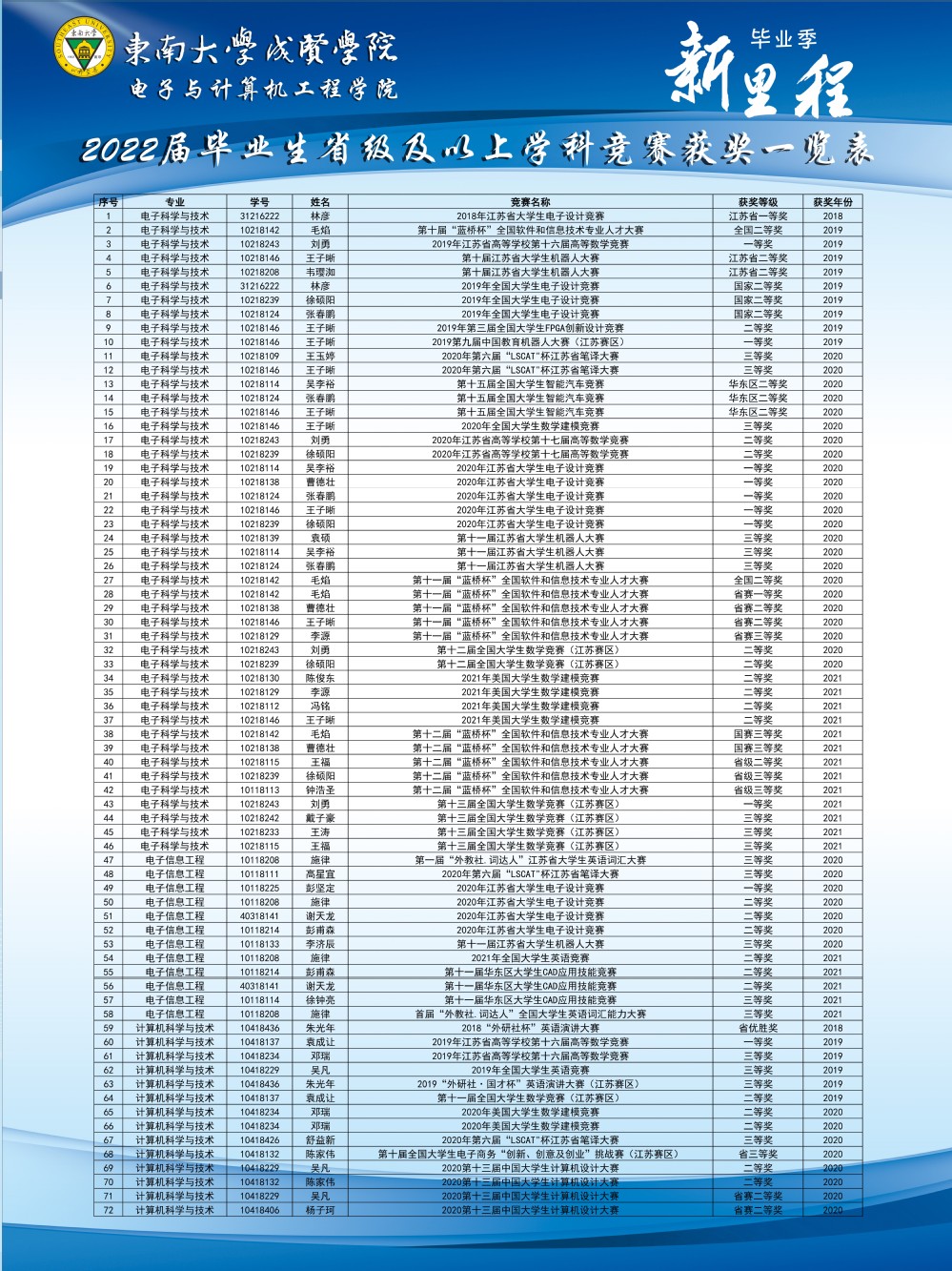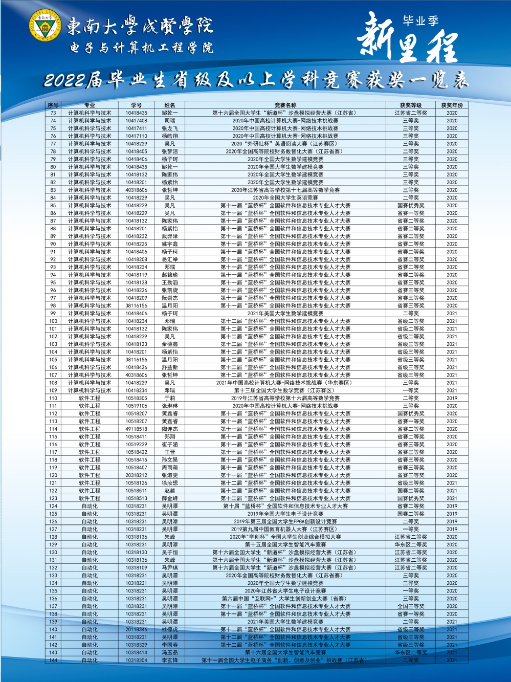 2022届毕业生省级及以上学科竞赛获奖情况一览表