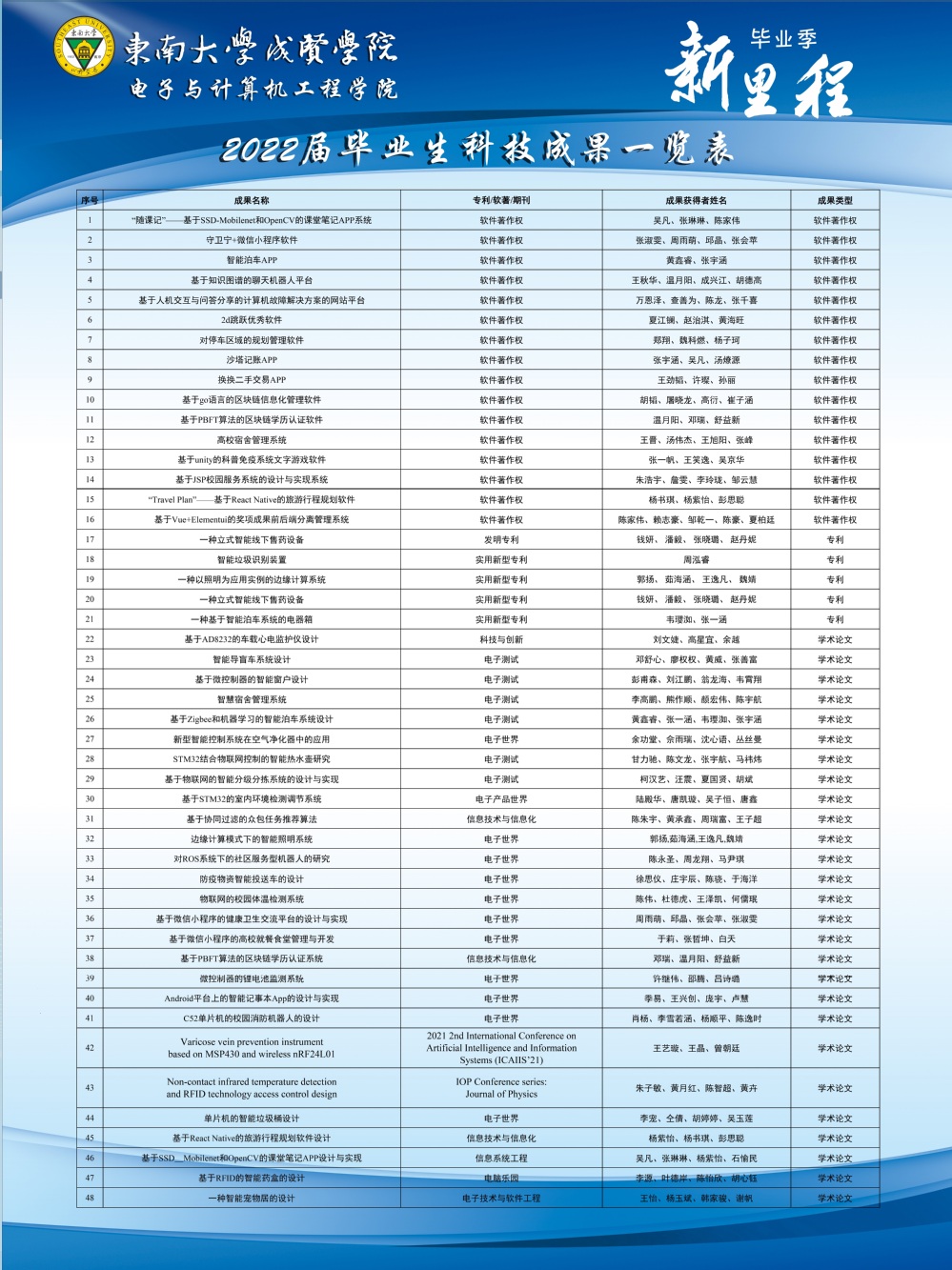 2022届毕业生科技成果一览表