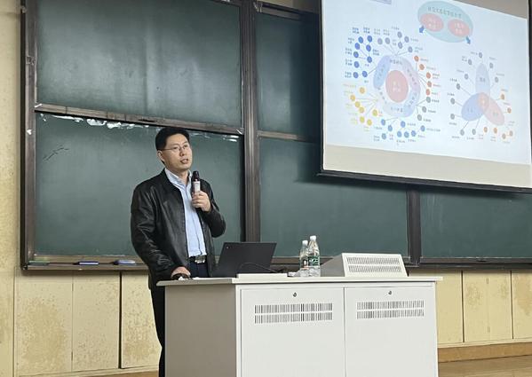 曹玖新教授在报告中讲到,随着各种社交网络平台的不断出现,用户同时拥有多个网络平台的多个账号,进而获得多类型服务的行为已成为新常态,如何对在线网络用户及其账号进行分析发现、进而分析在线网络的用户行为与信息传播模式是促进网络优质服务、精确推荐、网络在线广告与舆情分析的关键。曹玖新教授从在线网络的用户特征和行为分析出发,探讨在线网络用户发现的机制,对在线网络用户偏好及网络信息传播的建模方法进行介绍。曹玖新教授用通俗易懂的语言为师生科普了网络空间安全的知识,并结合研究拓扑图为同学们展示了网络安全空间目前研究的热点。