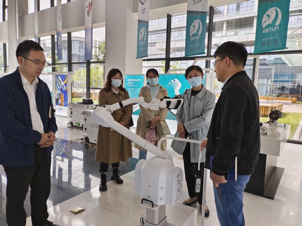 南京埃斯顿自动化股份有限公司教育事业经理秦勇、人力资源部陈姣热情接待公司来访的领导和老师。秦勇经理带领大家参观了公司展览馆并介绍了公司产品研发情况:埃斯顿自动化长期专注于高端智能机械装备及其核心控制和功能部件的技术开发,生产和销售。工业自动化系列产品线包括全系列交流伺服系统,变频器,PLC,触摸屏,视觉产品和运动控制系统,以及机器人一体化的智能单元产品。工业机器人产品线在新能源,焊接,金属加工、3C电子、工程机械、航天航空等细分行业拥有头部客户和较大市场份额。2020年被福布斯评为“2020年度福布斯中国最具创新力企业榜工业机器人唯一上榜企业”。